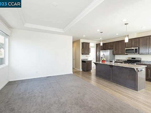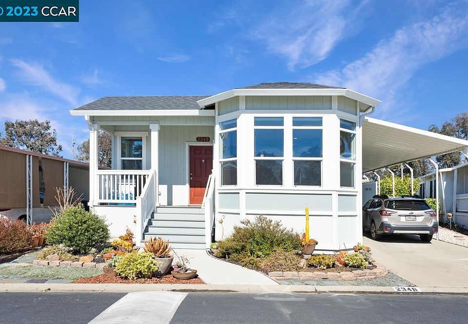 Very desirable Dalis Gardens Senior park 55+ Move in ready, 2 bedrooms and a bonus room could be used as bedroom (no closet) 2 bath rooms with showers over tub in 2nd bathroom. Lots of extras, built in rod in shower, and handle for easy in and out of shower. Stainless steel appliances. Front porch to enjoy. One of the newest homes in the park. All dual pane windows, and window covers roll up and roll down. No animals ever lived in residence. Animals are allowed with restrictions. Must see this lovely home to appreciate, built in 2018, only occupied since 2019. Approximately 1300+ square feet. Covered carport. Full size storage shed, matching home. Low maintenance front yard. Community pool, spa and sauna. Must qualify with park for residency, income must be 3 x rental income and cover other debits. Call agent for showing 925.285.9636 OPEN HOUSE SATURDAY 4/8/23 1PM - 3PM