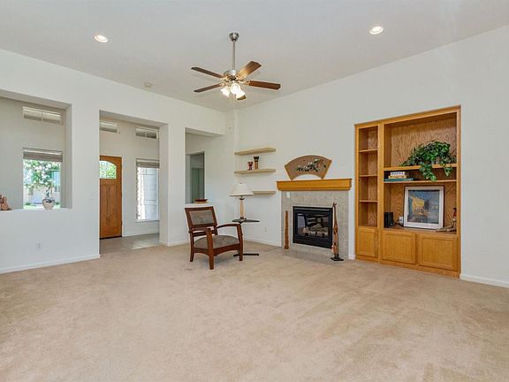 Come and view this charming 3 bedroom, 2 bath home located in the River Ridge subdivision of Reedley. The house has been freshly painted, with a tiled entry leading into a Great Room with a fireplace and a large picture window looking out over a beautiful, landscaped yard. There are 220 outlets in the backyard to allow for reinstallation of a hot tub or sauna. The Dining Room and Kitchen is open into the Great Room and includes a refrigerator, dishwasher, and optional gas connection for the stove with a 2 car garage attached off the kitchen hallway. A scenic room off of the kitchen can be used as a breakfast nook or family room. Master bedroom has high ceilings, a walk-in closet, large bathtub, and a 1/4 bathroom privacy closet. The house has central A/C and a laundry room, which includes a sink and a front-load washer and dryer. Sprinklers in the front and back yard.