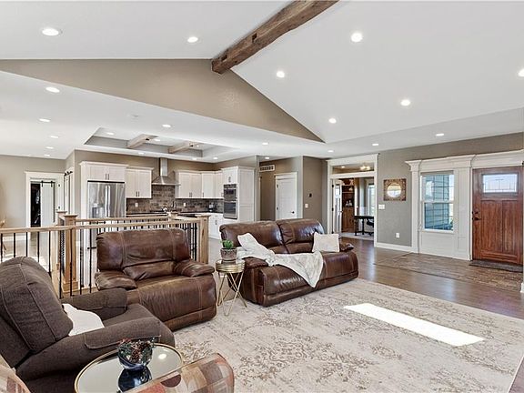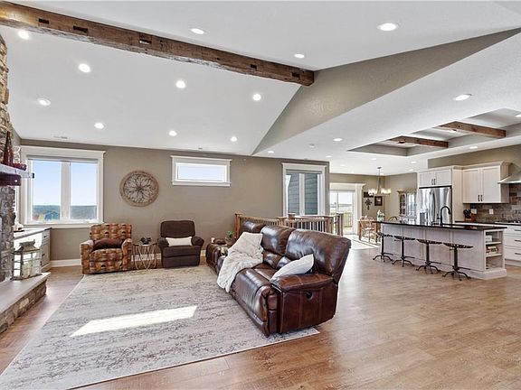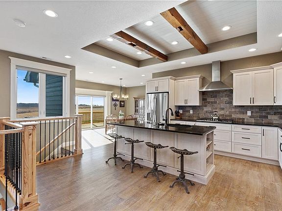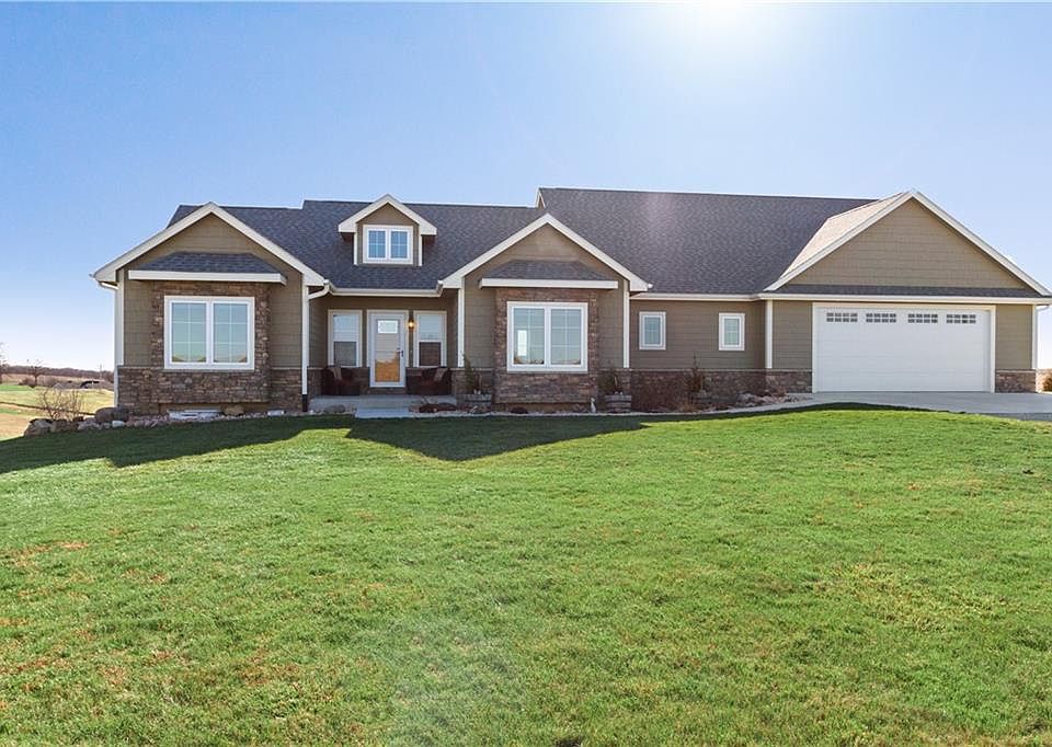 Dreaming of that gorgeous home full of modern farmhouse charm on 3 acres of land within 10 minutes of Pella...This is the ONE! Quality and craftsmanship shine through in this 5 BR/ 4 1/2 BA Ranch home with 4 car attached garage. You are sure to be in AWE the moment you walk in the front door as the first thing you will notice is the spacious floor plan, the stunning custom hickory trim work and built-ins and fireplace. The focal point will be the 1870 hand hewn barn beams in the great room vaulted ceiling and the ship lap tray ceiling in the kitchen that includes additional barn beams from an 1880 barn. The grand kitchen includes Bertch cabinets with a soft white glazing finish along with granite countertops and large island for the family to gather. Downstairs will add 2044 s.f. of living space and includes a sunroom with stamped concrete floor, gas fireplace and many windows to enjoy the peaceful countryside, family room with wet bar, 2 BR that are both En-Suites, 2nd washer & dryer.