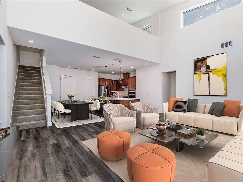 Live in elevated luxury with vaulted ceilings and two separate outdoor spaces. This approximately +2,400 sq. ft. Penthouse provides plenty of space to spread out and enjoy! Occupying the top 3rd and 4th floors of the building, this home is flooded with natural light coming through the 12 ft. stacking slider and row of additional windows above. No neighbor above you in this top floor penthouse. A private roof terrace with linear fireplace & large balcony off of the great room make this an entertainer's delight. Media room and full junior suite upstairs given an expansive secondary living space. Additional built-in cabinetry throughout this home offers generous storage space opportunities. Private 2-car garage with side-by-side parking with room for storage and EV car charger.