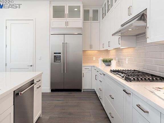 Lavishly upgraded ~4-year young luxury condo in Warm Springs! *Spacious & bright unit w/front & balcony entrance *Gourmet kitchen features quartz countertop w/full tile backsplash, ample cabinets, gas cooktop, built-in refrigerator, microwave & oven, stainless steel appliances, hardwood floor, & recessed lights *Master suite features large windows, remote controlled window treatment, private balcony *Master bath offers spacious walk-in closet, large walk-in shower, double vanity *Convenient in unit laundry room *Detached 2-car private garage w/high powered electrical outlet for EV/Tesla charger *Premium carpet in bedrooms *Plantation shutters throughout *Central heating/AC system *HOA amenities include swimming pool, spa, gym, club houses, conference rooms, BBQ grills, fire pit, green belt *Walking distance to BART *Close to shops, parks, markets, restaurants *EZ access to I-680 & I-880 *Close to tech giants: Tesla, Google, Microsoft, Meta etc *Lila Bringhurst school w/Mandarin immersion *A must see