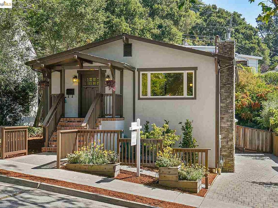 Berkeley Hills Rebuilt Craftsman Home with SF View. This Craftsman home has been rebuilt by the current owner. The home has been lifted, stripped and recreated to expand the living space to over 2100 square feet. Captivating views of San Francisco and the Golden Gate provide a backdrop for entertaining on the back deck overlooking the newly landscaped garden. The entry landscaping with built in planter boxes provides charm and privacy. The homes open living room and dining room feature refinished hardwood floors, built ins surrounding the fireplace and custom dining room bar. The gourmet kitchen was redesigned with new cabinetry, granite countertops and stainless appliances. The upper level has two bedrooms and new one bath. The lower level has a master retreat with a luxurious bath, walk in closet and hidden storage room and an additional bedroom or office and a third new bath.