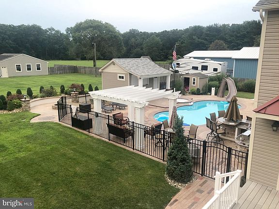 Beautiful, modern colonial home sits in a peaceful area offering quiet streets for walks, bike rides and extra land to create whatever your mind can imagine. After a look around you'll find it has everything you're looking for and more! Before you even enter the front door you'll notice the quality of this home with the mahogany wood ceiling and attention to detail. The floor plan greets you at the great room with an impressive floor to ceiling wood burning fireplace flanked by full length windows pouring in natural light. Walk into the second lounging area open to dining and a custom kitchen with granite counter tops. Hardwood flooring and tiled rooms add to the beauty of the main level. The 5 bedrooms and wide hallways are carpeted on the second floor. The impressive landing offers a window seat with built in storage, in front of an over sized window facing the front yard, surrounded by built in bookshelves. The laundry room with counter space and storage offer major convenience upstairs. There is a large office with exterior access and a window overlooking the great room too. As you walk around outside you'll be blown away by the composite decking, hard scaping, mature landscaping, built-in double grill, sink and granite counter tops. The pool and Jacuzzi are surrounded by stamped cement, pergola, pool house with bathroom, pool shed and fire pit. Storage is the name of the game in this well thought out property. There are sheds for storage as well as an additional two car garage in the back yard. The sprinkler system seals the deal and makes maintenance easy. Minutes from the Motor Sports Park and Rte. 55, reaching Phila. and the shore points in less than an hour. There is too much to list, you just need to come see it!