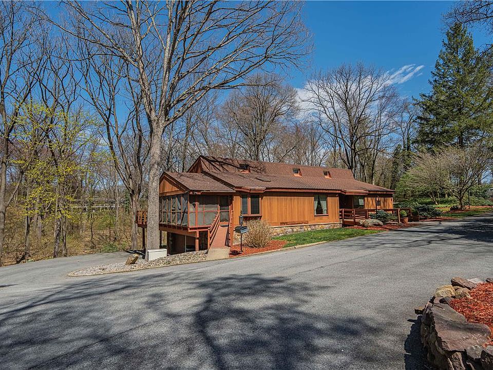Custom built Contemporary situated on a private 2 acre lot close to major routes, Lehigh Valley Hospital and Lehigh Country Club is on the market for the first time. The spacious foyer offers beautiful view of the living room with picture window overlooking natural landscape. Hardwood hall leads to dining room with built-in china cabinets, hall bath and large family room with stunning floor to ceiling stone fireplace. Family room presents built-in custom cabinetry, wet bar and accesses the deck running the entire back of the house. Eat-in kitchen has generous storage and opens to screen porch. 1st floor Master bedroom offers large walk-in closet, cedar closet, full bath w/ dressing vanity sink, separate vanity, large shower and large laundry room. Circular stairs w/stone wall lead to finished LL w/ 2 beds, Jack N' Jill bath, 2nd family room w/ stone fireplace and rec area. LL mechanics room and storage lead to oversized garage. One of kind home surrounded by privacy of nature.