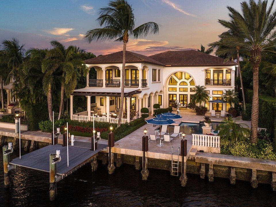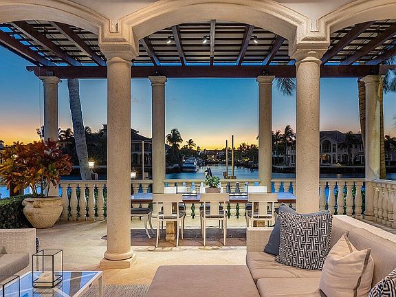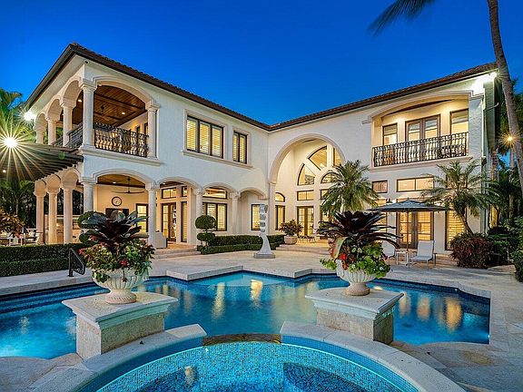 Welcome to 2348 S. Ocean Blvd. in Highland Beach. This gated estate with sweeping wide water views was masterfully built by award-winning Jeff Norman with incomparable elegance and represents the pinnacle of the South Florida lifestyle. Exuding warmth, interiors include 11,284 TSF, 5 Bedrooms, and 6.2 Bathrooms. The two-story residence is highlighted with a magical atmosphere reflecting refined finishes, subdued colors, bespoke fixtures, and stunning wood and marble work. Making an unforgettable impression, guests are greeted by an open foyer leading to the great room which features a spectacular floor-to-ceiling stone fireplace, adjacent temperature-controlled wine room and floor-to-ceiling windows and doors opening to the free-form saltwater pool and waterside loggia. The grand epicurean kitchen and waterside gathering room are designed to perfection representing an elegant oasis of luxe and comfort offering fine custom cabinetry with quartz and marble countertops, fully equipped butler's pantry, top shelf appliances, dual dishwashers, and six-burner Wolf gas range. Also on the first floor are an intimate library/office revealing custom mahogany built-ins, a formal dining room, and a secluded VIP guest suite with unparalleled views of the Intracoastal waters. A private elevator and a grand staircase with a custom-designed clear stained glass window lead to the second level and upper gallery. The owner's suite enjoys pride of place and delivers unparalleled luxury from dual his/her baths and wardrobes, morning bar, and a private balcony yielding/endless water and sunset vistas/with a seductive pull to unwind and surround yourself with nature. Three additional guest suites, one with private stair access, provide ample space for family and guests. With a hint of excitement venture outside to the tropically landscaped salt-water pool and spa, large covered loggia, with automatic phantom screens, summer kitchen with DCS grill, outdoor shower, dock with 24,000lb electric watercraft lift, all conjuring a mood for perfect entertaining. Additional features include travertine marble and wood floors, UV filtered high-impact windows and doors. two tankless water heaters, elevator, full house generator, water filter and softener system, central vacuum, poured contract 2nd floor, 5 A/C zones, smart home, 4 car garage and Sonos music system. Superbly located, the residence offers deeded beach access to the beautiful Atlantic Ocean and is moments away from a wealth of luxuries and conveniences found along Atlantic Avenue, Delray Beach. Finely curated furnishings provide an exciting move-in opportunity!!!