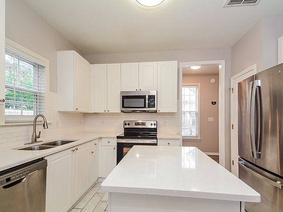 Please note, our homes are available on a first-come, first-serve basis and are not reserved until the lease is signed by all applicants and security deposits are collected. This home features Progress Smart Home - Progress Residential's smart home app, which allows you to control the home securely from any of your devices. Want to tour on your own? Click the "Self Tour" button on this home's RentProgress. Come see this charming two-story rental home with three bedrooms, two and a half bathrooms, and 1,529 square feet of space in Raleigh, NC. This renovated Colonial-style smart home has a corner fireplace with a white mantel as well as traditional crown moulding in the living room. A glass door provides easy outdoor access. Highlights of the updated kitchen include a dining area with a contemporary chandelier, a center island with a quartz countertop, and a storage pantry. Upstairs, you'll find an elevated ceiling with a fan in the primary suite, along with a walk-in closet with shelves. The en-suite bathroom includes a white tile backsplash and dual vanity sinks. Contact us today to schedule your personal tour of this rental home. Utilities must be transferred into the resident's name.