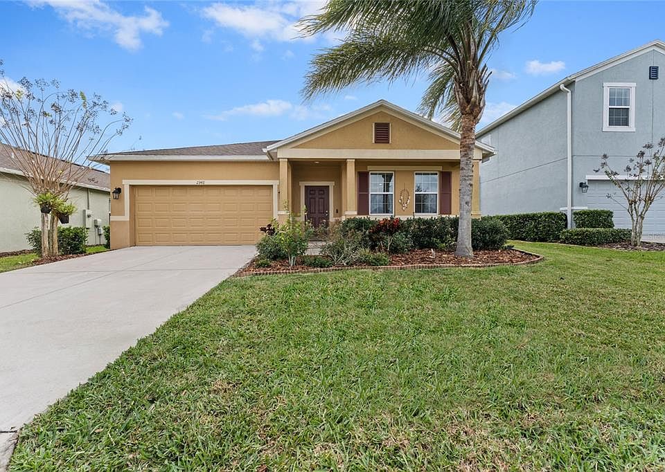 Nestled in the gated community of Sereno, this beautifully maintained home, built in 2014, is listed competitively below market value. Being at the back of the community, your backyard is a private pond overlooking a peaceful wooded tree area. With high ceilings and abundant natural light, the spacious interior welcomes you into an open-plan living area overlooking the dining room, perfect for gatherings. With a fresh repaint, and a newly added kitchen backsplash to compliment the stainless-steel appliances. Enjoy the convenience of a 2-car garage and an in-house laundry room, to go along with low HOA fees. Minutes away from major interstates, shopping centers, and amenities like the Providence Golf Course and Downtown Champions Gate, this residence offers both serenity and accessibility. Residents can relax in the community pool and playground. Discover comfort, convenience, and security in this inviting home.