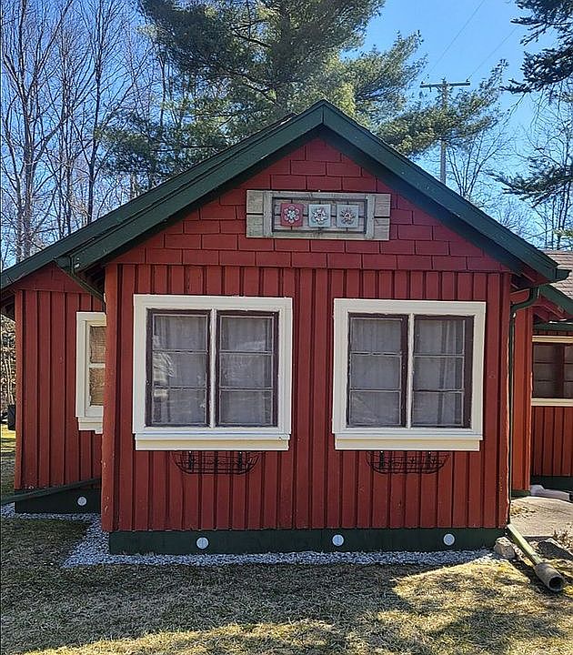 The possibilities are endless with this charming cottage nestled between Lake George and Rifle Lake, in the Shady Shores community. This classic up north cottage has tongue and groove knotty pine throughout. The floors are a blank canvas, ready to make it your own. 2 bedrooms with enclosed front porch used as a 3rd bedroom. Relax in the backyard on your 312 square foot deck or enjoy a night by the fire pit. Visit the community's private beach for a day in the sun, enjoy either lake with boat launch access, or pick up a few things at the party store within the community. Park in your 1 car garage or use for secure storage. Yard is partially fenced, although it can be easily removed. Lot is 50' frontage x 125' deep.