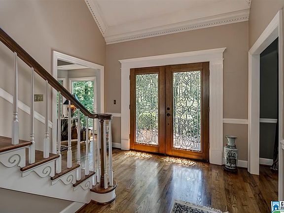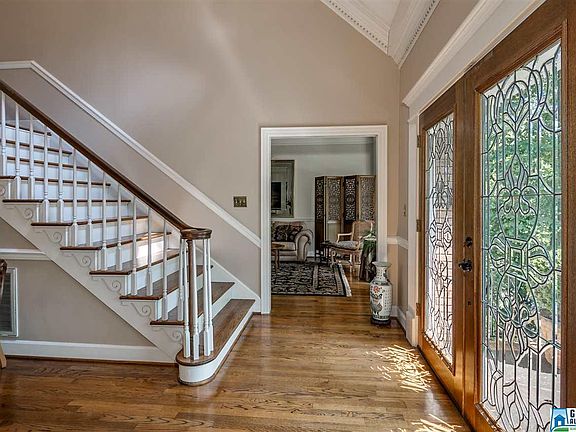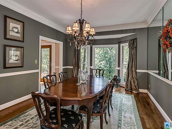 This is a wonderful family home and great for entertaining on the lovely patio. The lot is very private and the location is convenient to shopping and Vestavia High School. The master is on the main level and there are only a few steps in the garage to the office/sunroom. The separate Living Room and Dining Room both have a bay window to enjoy the view. The Kitchen has an eat-in area and features double ovens, an island, and a built-in desk. The Family Room has a fireplace and built-in bookcase as well as a wet bar for entertaining. The Master Bedroom is large and has a built-in bookcase and a separate tub and shower in the bath. Upstairs there are 3 additional Bedrooms and 2 baths. The Playroom/workout Room is located over the garage. There is a oversized patio with beautiful gardens for entertaining or merely enjoying with the family. There is not a flat grassy area for play but the large patio is also perfect for little ones to ride their toys and play.