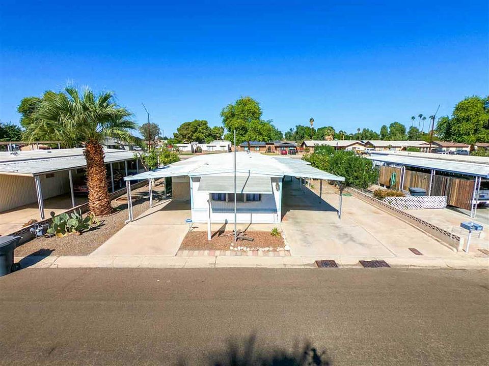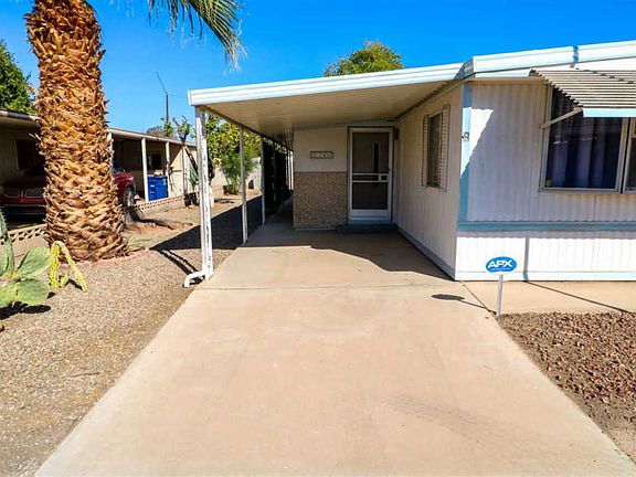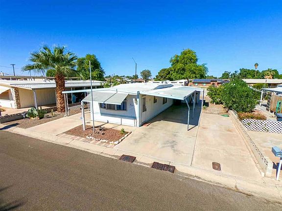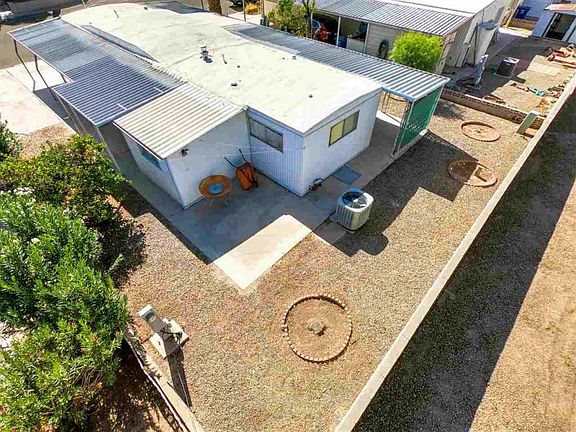 Well loved 2 bedroom, 1 bath, fully furnished (linens, dishes, pots & pans) mobile (14' X 64' with addition for 986 sq ft) in Del Oro Estates where you own the lot. Association fees include internet, cable, clubhouse, pool, hot tub and are $495 per year. New AC and furnace in 2015. New roof in 2014. New flooring in 2018. Newer water heater, & kitchen appliances. Citrus trees on the property with drip system. Has a workshop with washer and dryer included. Two covered patios, and covered parking for 3 cars.