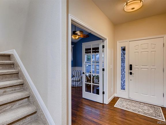 This well cared for and updated 2-story home is nestled on a quiet double cul-de-sac street, that backs to private acreage and greenbelt. Stunning curb appeal with custom exterior paint colors, updated motion lighting and beautifully maintained landscaping welcomes you in. The rich, warm engineered wood flooring is complimented by the new 4'' baseboards, custom bamboo blinds, fresh paint and open layout. The large main floor office or bonus room includes double glass french doors, custom wood trim details, wainscoting, vaulted ceilings and new fixtures. The open hall leads you into the fully remodeled kitchen and open concept living and dining area. Stunning, high-end granite slab counters and 6'' granite backsplash will impress! Brand new top of the line 3-piece GE appliance package enhance the space in addition to a custom stone tile breakfast bar, 18x18 tile floors with custom inlays, new lighting and all new bronze hardware throughout. The separate dining area offers views of gorgeous open acreage, access to the backyard and custom 2-level paver patio with private yard that backs to trails. The living area has built in surround sound, newer window treatments and double-sided gas fireplace. The upper level includes a spacious private master suite with wood flooring, amazing views and attached 5-piece bath with separate walk-in shower and soaking tub. Also includes, large walk-in closet with custom shelving. The secondary bedrooms both offer newer paint and carpet, updated hardware and a shared full bathroom that has been recently updated. Located in Cherry School District, easy access to amazing trails, Southlands shopping/dining, DIA, E470 and much more - this is the home you have been waiting for!