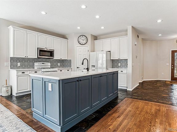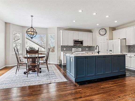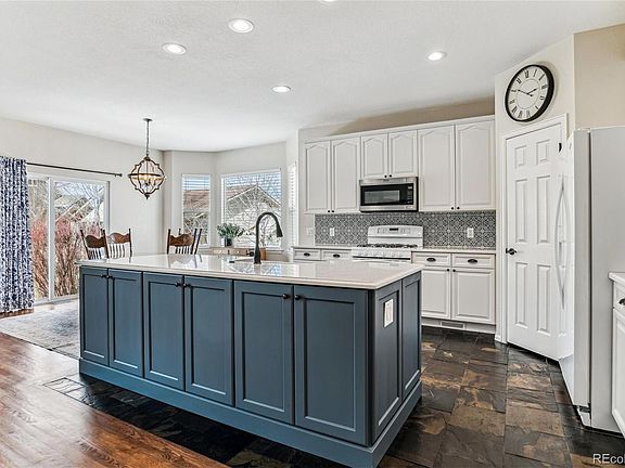 Welcome to this fully updated 3 bed/3 bath plus office, ranch style home in the coveted Heritage Eagle Bend neighborhood! This lovely home sits on a spacious .45 acre lot with xeriscaped front yard, mature rear landscaping, concrete back patio, and covered front porch. Upon entering, you are greeted with the warmth and charm of the solid oak flooring and stunning slate. On the main level, you’ll find a large, open living room with an updated stacked stone gas fireplace with mantel. As you enter the kitchen, you’ll notice the gorgeous quartz countertops, oversized island with farmhouse sink, ample cabinet space, designer backsplash, a large pantry, gas range, and an adjacent dining area. The primary bedroom features newer carpet, neutral paint, and double tray ceiling. Attached to the primary bedroom, you’ll find the remodeled five-piece bathroom with new double sinks, bronze fixtures, quartz countertops, enlarged walk-in shower with frameless glass door, and amazing soaker tub. An oversized second bedroom is located on the main-floor near the conveniently located full bathroom with updated vanity. Laundry is a breeze in its own separate room with utility sink and closet. In the finished basement, you will find a third bedroom, a 3/4 bathroom, an office/craft room, a large family room, and a generous storage room. The over-sized attached garage has space for 2 cars plus a golf cart. This 45+ community offers a wide range of amenities and activities. The Eagles Nest restaurant provides a space for residents to socialize and dine. The ballroom and meeting rooms offer options for events and gatherings. The state-of-the-art workout facility, indoor and outdoor pools, sauna, and hot tub provide ample opportunities for exercise and relaxation. Take advantage of the amenities like Bocce, Tennis, Pickleball, and golf, allowing residents to stay active and enjoy the beautiful surroundings. Ask your agent for a full list of improvements made to this home! Don’t miss this one!