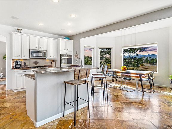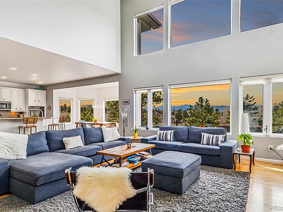 Beautiful custom home with stunning Mt. Evans views! The great room features a wall of windows overlooking the meadow and Mt Evans, a fireplace for ambiance, and a wall of built-in cabinetry. The well-designed kitchen features great natural light, granite slab counters, and a casual eating space to enjoy the views. The bright yet intimate living room is the perfect space for conversation. The private main floor office has built-in cabinetry plus a window for inspiration. The master bedroom overlooks Mt Evans, has vaulted ceilings, a fireplace, and a sitting area for a private retreat space. In addition to the master, the upper level also has three additional bedrooms. The fifth bedroom is located on the lower level and would make a perfect guest suite. The spacious lower level family room features a fireplace, wet bar, and direct access to the outdoor stone patio for entertaining and enjoying the great outdoors. The front entry is also nicely landscaped with a sitting area. Award-winning schools and easy commuter access to downtown Denver and the mountains make this the place to enjoy the Colorado lifestyle.