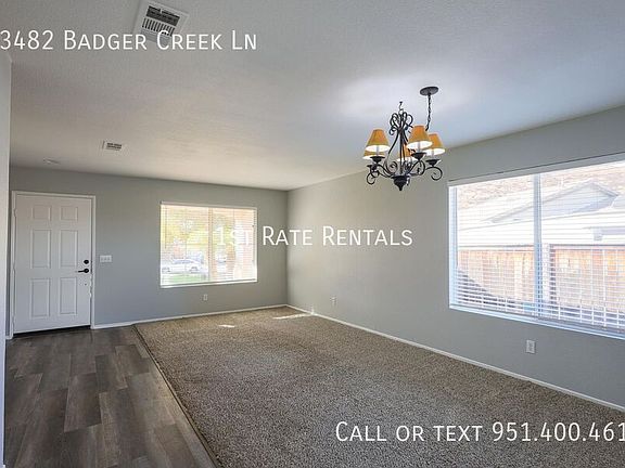 Just painted top to bottom and ready for a new occupant! Check out this wonderful single-story, three (3) bedroom, two (2) bathroom home in Menifee. When you enter this lovely property, you are greeted with a nice formal living space that separates the entry from the family room. The family room has a great niche and has direct access to the eating area off the kitchen and a nice U-shaped kitchen with lots of cabinets. Down the hall, you will find your guest bathroom with a tub/shower combo, and three good-sized rooms. The primary bedroom is a wonderful size and has a great ensuite bathroom with a walk-in closet, dual sinks, and a separate tub and shower. Outback is a large cement patio and patio cover, a nice flat backyard, and no neighbors behind. Please note: this property DOES accept pets! Size, quantity, and breed restrictions apply. $25 pet rent per pet is required. Residents will be auto-enrolled in our maintenance insurance and home assistant package providing $1,000 in accidental damage coverage, accidental lockouts, and concierge services at $20 per month. RENTAL QUALIFICATIONS 3x Monthly Rent in Income (Gross; debt to income not to exceed 45%) 640+ Credit Score Combined Collections Under $1,000; not to exceed 4 collections/charge offs or 1 utility collection No Check Cashing/Payday Loan/Short Term Loan Collections No Evictions No Foreclosure within past 2 years No Bankruptcies within past 2 years (bankruptcies must be discharged) No Tax or Government Liens No Home-Based Businesses that have clients who come to the property *except licensed home-care/daycare No co-signers Renter's insurance required