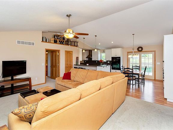 Country living! This well maintained ranch home sits on 1.64 acres and is ready for new owners. Open concept living area with updated kitchen, breakfast bar and eat-in kitchen with beautiful built-ins. Sliding glass doors off of the dining area to the deck to enjoy the beautiful, secluded views! The main floor boasts a master suite with walk-in closet, 2 great sized bedrooms, a full bathroom and main floor laundry. The walkout lower level has a large rec room area, bedroom, full bathroom and great storage. The oversized 2 stall garage has enough room for parking 2 vehicles easily and TONS of extra space for storage or a work area. This acreage is located off of a hard surfaced road with easy access to Highway 151.