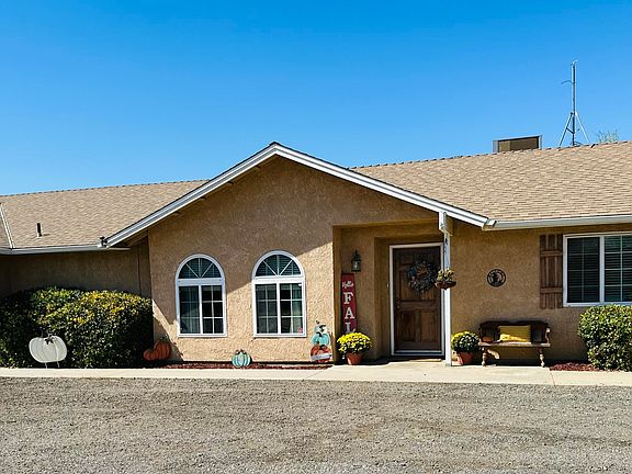 This stunning custom built home features four bedrooms, three full baths, over 2200 square feet of living space, seller paid solar, and sits on a 1.4 acre lot. The open floor plan seamlessly connects spacious living, dining and kitchen areas perfect for everyday living and for entertaining. The wood burning stove provides a cozy space for cool weather fires and is beautifully built on stacked stone with a customized mantel perfect for decor, art work or family photos. The great room is the prefect blend of sophistication with farm house flare featuring large picture windows, vaulted ceiling, and specialty ceiling fans for ultimate comfort. The large kitchen comfortably has dining space for six, could be utilized for buffets and provides extensive prep space, a spacious walk in pantry and is adjacent to the laundry room and garage. Only one owner on this home who has lovingly updated with new light in color laminate wood planking, Corian kitchen counters, light fixtures, ceiling fans throughout, and recessed lights. The master bedroom is private, spacious, has large windows for natural light, a walk in closet, and a sliding glass door for patio access. The master bedroom is expansive with two sinks, ample storage, a separate shower and serene spa Jacuzzi tub. The three additional bedrooms provide comfort and versatility for family and guests. Just a few home features to boast about are the on demand water heater, whole house vacuum system, newer and larger AC unit, and so much more. moving outside the property has so much to offer including a sea train for storage, large back yard patio to watch the sun set in the west, a historical shed, sprinklers, a row of olive trees, and RV parking with hook up. Centrally located this home offers a balance of tranquility and convenience as it is an easy commute to Exeter, Lindsay, and surrounding towns. Enjoy country living with a view of the foothills. Don't miss the opportunity to make this exceptional home your next home,
