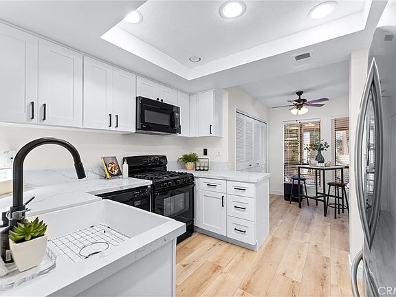 Immerse yourself in peace and tranquility with this amazing home in the sought-after gated community of Finisterra on the Green. Enjoy stunning golf course views and close proximity to Lake Mission Viejo. Step into a cozy open floor plan where the newly renovated kitchen boasts quartz countertops, a farmhouse sink, and a handy built-in microwave. Next to the kitchen, discover a charming breakfast nook and a practical laundry area with full-size machines and extra room for storage.