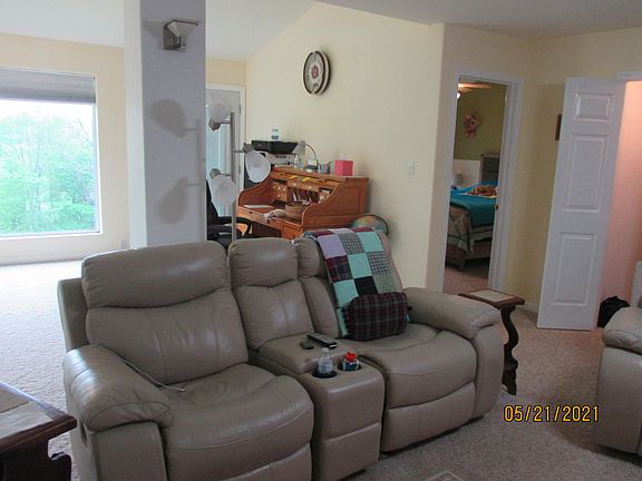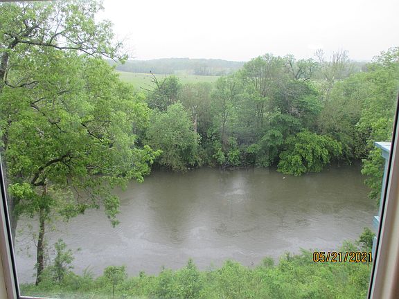 What a view. You will love the river view and the beautiful rolling farmland on this one. The home has a wonderful open floor plan of the living room, dining room, and kitchen area. On the main level is also a bedroom, full bath and laundry room. Go upstairs to the large master suite and large bath with double sinks, walk in shower and 2 large walk in closets. Outside is a large carport for an RV with 2 spaces and a 2 car detached garage. In an area under the house you will find a wonderful work shop. This place would make a great weekend rental.