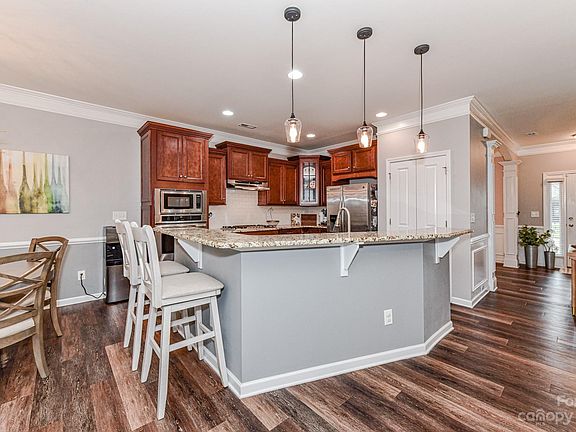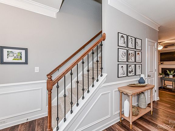 Move-in ready 4 bedroom home with classic, functional floor plan! Charming rocking chair front porch leads to the entry way. Gorgeous LVP flooring & crown molding on main. Neutral paint throughout. Dining room adorned w picture frame molding. Open kitchen & breakfast area feature granite countertops, subway tile backsplash, stainless steel appliances, recessed lighting & island w at-counter seating. Large living room with gas fireplace. Bed & full bath on main. Upstairs, find 3 additional beds, all with ceiling fans. Primary suite boasts tray ceiling, walk-in closet, dual sink vanity, tiled shower & garden tub. Hall bath w dual sink vanity, tub/shower combo & linen closet. Spacious loft upstairs provides additional living space, perfect as an office or rec room! Laundry room upstairs. Fully fenced backyard complete with covered porch & playset. This is a great space to relax or entertain! HOA amenities include clubhouse, outdoor pool & playground. Easy access to Monroe Expressway.