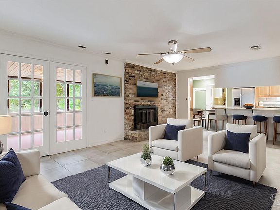 Welcome to this charming LAKE FRONT residence! As you arrive, you'll be greeted by a circular driveway, a two-car garage, a detached over sized one-car garage, and ample parking space for everyone. Plus, you'll love the inviting inground swimming pool! Enter through the double front doors into the foyer, and to your right, you'll find a cozy sitting area with wood-look flooring and a bay window—perfect for reading and soaking up natural light. This room flows into the dining area and kitchen, featuring an abundance of custom-made wood cabinets, granite countertops, and stainless-steel appliances—a kitchen designed for both cooking and enjoyment. The spacious laundry room conveniently leads to the backyard, garage, and a half bath with a single vanity sink and tile floors. Off the kitchen, the living room offers a warm atmosphere with a brick fireplace, tile floors, and French doors opening to a screened-in porch. Down the hallway, you'll find a full bathroom with double vanity sinks, a linen closet, tile floors, and a tub/shower combination. The three additional bedrooms are generously sized, with two featuring brand-new carpeting. The primary bedroom also boasts new carpeting and French doors that open to the porch. The primary bathroom includes double vanity sinks, a large closet, and a custom-tiled walk-in shower. The backyard is an oasis with a stunning lake view and plenty of space featuring mature trees—an ideal setting for gatherings, dinner parties, or simply relaxing. Take one look at this amazing home and make it yours today!