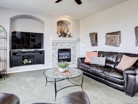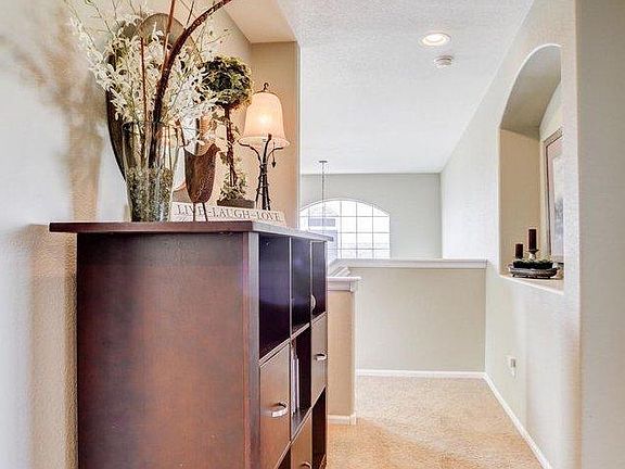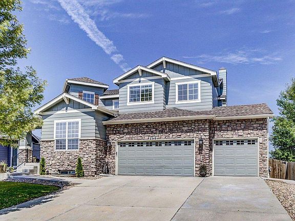 This immaculate two-story home is located in the highly sought-after Vista Ridge neighborhood, offering stunning views of the 14th hole of Colorado National Golf Club and a serene greenbelt. With a spacious, fully finished walk-out basement, this home provides an ideal setting for outdoor entertaining. The home features six bedrooms and four and a half bathrooms, as well as a three-car garage. The two-story grand entry with vaulted ceilings welcomes you inside. The fully finished walk-out basement includes a mother-in-law suite with two bedrooms, two bathrooms, a washer and dryer, and a full kitchen with a refrigerator and stove. On the main level, you'll find an office, perfect for working from home, a half bath, and a formal dining room for hosting guests. The updated kitchen boasts granite countertops, a subway tile backsplash, and upgraded stainless steel appliances, including a fully vented hood. The large pantry and center island provide ample space for meal prep. The spacious great room features a newly stoned fireplace, and throughout the main floor, you'll enjoy gorgeous hardwood floors and warm gray tones. Step outside to the expansive deck, where you can enjoy breathtaking views of the mountains and the mature landscaping. Upstairs, you'll find four spacious bedrooms, including a grand master suite with a five-piece bath, upgraded flooring, granite countertops, glass tile detailing, and a generous walk-in closet. There is also a convenient laundry chute connecting to the main floor mudroom/laundry. The secondary bathroom has dual sinks, newly updated tile flooring, and custom shower tile. The three-car oversized garage includes workspace and ample storage space. Located just minutes from Denver, Boulder, Longmont, and Loveland, this home offers easy access to local amenities, parks, schools, and the golf course. Combining modern luxury with outdoor tranquility, this exceptional home provides everything you need for comfortable living and entertaining. Don't miss out on this incredible opportunity!