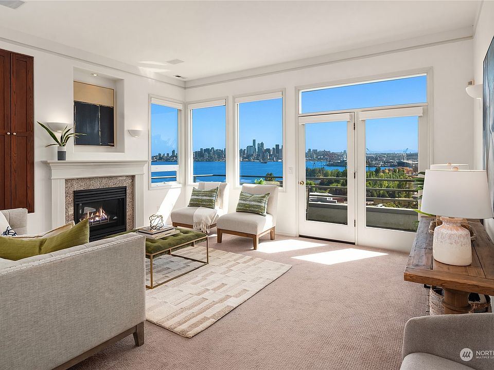 Exceptional top-floor view condo in City Lights! Arguably the best views to be found in this well-run complex, prepare to be wowed by the jaw-dropping vistas of Elliott Bay, the Cascades & Seattle skyline. This expansive 2 bed + office / 2 bath end-unit is not to be missed. Enjoy open-concept living with a huge kitchen, dining & living room areas that effortlessly flow together & open onto an entertainment-sized deck. Large primary with custom built-ins, walk-in closet & en-suite bath + another generous bedroom, office & bath. As a perk, the private 2-car garage with storage cabinets is not to be missed. Tankless water heater, hydronic furnace, fresh paint & more. Near Alki beach, the WS Bridge, restaurants, shops & transit. Welcome home!