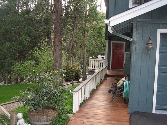 Charming, immaculate Custom Built home in beautiful Sierra foothills , with approx. 150ft of RIVER FRONTAGE. Short drive to Yosemite NP. Beautiful landscaping, including river rock walls and private walkways. Sun porch overlooking river. Redwood decking. Very private lot lined with cedars, oaks & pines. Wainscoting, crown moldings, plantation shutters, cherry wood flooring, granite countertops & lots of windows to enjoy the views. Outbuildings include Hobby Shop & Garden Shed. New Roof & new exterior paint. Home has been lovingly cared for by original owner.
