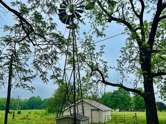 Public water but has an amazing well/windmill that with some fixing could be super neat for farming. Charming home with Steel siding, nice tall windows, dedicated master suite and newer flooring. Lots of closet space not found in homes this age. 10 acres +/- on a corner lot with the possibility of living while you build or just enjoy the acreage. $uper nice auto waterer for horses or cattle, stocked pond, and over 100 new T-posts fencing make this one a must see. Best pasture in the county! Soil tested and treated annually. Just limed and ready for several head of cattle. Charming windmill and gorgeous huge old trees that make this a Charming Ozarkian Gem. Public water, small pond and a unique windmill makes it have loads of potential, especially if you're looking to split it up. Just a 20 minute drive to South Springfield amenities, groceries, restaurants and hospitals. Less than a mile to the elementary school and 10 min to the airport if you're an out of towner looking for peace and tranquility. Bring the horses! the detached garage building could be used for those too.