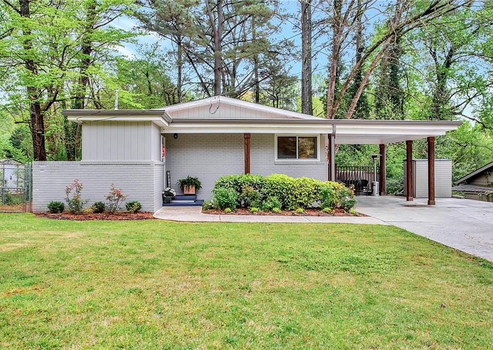 Mid-Century Modern Brookhaven Charm! One of the cutest Mid-Century Bungalows in Brookhaven’s most sought-after neighborhoods. Freshly painted and ready to move right in. It's perfect for your first home, investment rental, downsize or upsize - this home is for anyone looking to make Brookhaven HOME! Nestled on quiet Poplar Springs Dr, this front facade welcomes you to a beautiful flat front yard and plenty of off-street parking. Three bedrooms are situated at the back of the home for privacy, including the primary bedroom with en-suite. Two full baths, covered carport, and a freshly stained porch that's ready for your summer BBQ! The spacious backyard is fully fenced with a firepit area. New roof and gutters, freshly stained deck and outdoor entertaining area, fresh interior and exterior paint, landscaped front yard, freshened kitchen and baths are just a few of the recent upgrades. Welcome to your bright, open concept living space with vaulted ceilings and skylights, or enjoy cooking (or delivery!) in your spacious, funky kitchen that's bursting with modern charm. This home is an entertainer’s dream with options for seamless indoor/outdoor entertaining. The secondary bedrooms are perfect for guest rooms, home office, or your favorite stationary exercise appliance. All this, just a short summer walk to all that Brookhaven Village has to offer! Don't miss this fantastic opportunity to live on a quiet street in Brookhaven — only a few minutes to major highways, Buckhead, Sandy Springs, Midtown and ATL International Airport.
