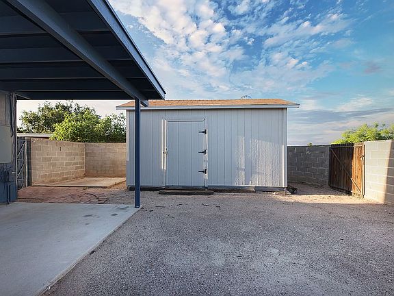 Price change due to recent active real estate analysis. Located in a quiet neighborhood close to everything. Recently remodeled. All kitchen appliances included. Beautiful views of the Rincon Mountains. -double paned windows -porcelain tile throughout -A/C -gas water heater -2 bedrooms -3rd space can be a small office/laundry room -great closet/storage space -full patio length of the entire house in back -large shed/workshop in back. -secure block wall backyard with full view (no homes blocking view)