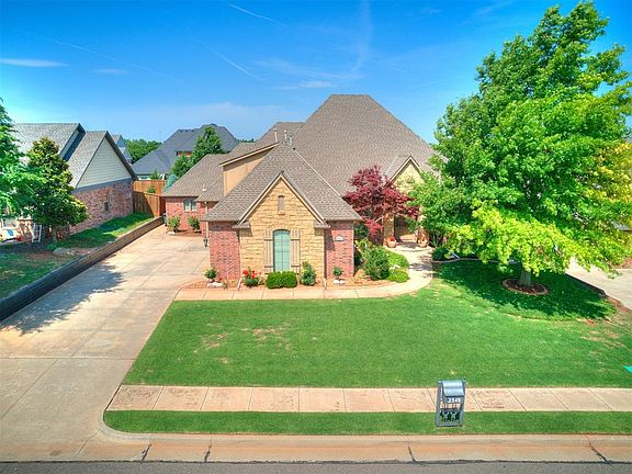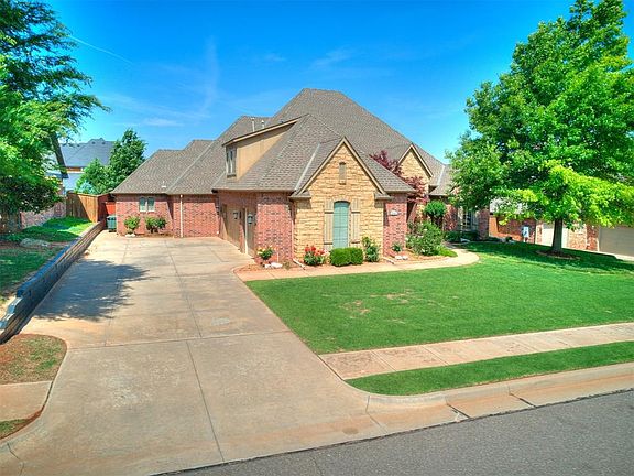 Kingsbury Ridge invites you to be their new neighbor!! Enjoy access to the neighborhood pond, sparkling pool for hot summer days, and a park perfect for outings and relaxation! This home offers the perfect blend of luxury, comfort, and functionality making it an ideal choice for all stages of life seeking a premium living experience in Edmond Schools. You’ll feel welcomed when you walk in the front door with open floor plan, formal dining, study, and spacious living room with barrel ceiling accented with a beautiful fireplace. Quality home crafted by a highly reputable builder with 4 generously sized bedrooms plus a dedicated study, and 3 ½ baths on main level with additional bonus room + half bath upstairs having access to walk out attic supplying plenty of decking storage. Key features include: 3 car side load with in-ground storm shelter & keypad entry, improved retaining walls, hand scraped oak hardwood floors, secondary bedrooms with wood tile, granite counter tops in kitchen with island, gas cook top, oven, microwave, and dishwasher (all SS), along with built-in hutch in eating area & refrigerator stays. Additional amenities: sprinkler system, back yard concrete pad with drain (was used for dog kennel), ample storage throughout, 2 zone H&A, large back covered patio with brick wood burning fireplace, plumbed gas for outdoor cooker, fully fenced, and built-in speakers. Mitch Park/YMCA, restaurants, and grocery store approx. 2-3 miles away with access to Portland (74N) or Broadway within 10-15 minutes!