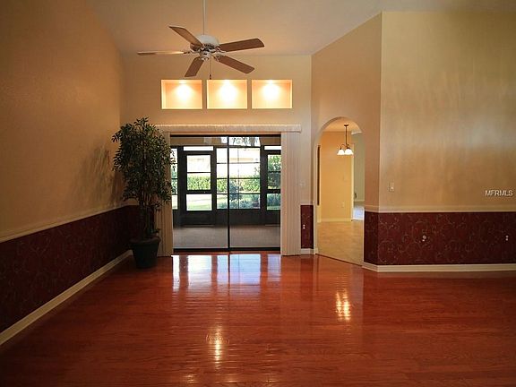 Nestled under a canopy of stately oak trees is this meticulously maintained 4 bedroom home located in one of Port Charlotte's most sought after areas. From the minute you pull into the driveway you are captivated by the lush landscaping framing the meandering walk leading you to the double entry doorway. Upon entering you are greeted by soaring ceilings, arched transom windows, decorative lighted niches and rich wood flooring in the living and dining room areas. Beyond is an exceptionally spacious family room, serviced by an open kitchen design featuring beautiful maple cabinetry, contrasting granite counters, Whirlpool Gold cooktop, a built in stainless steel convection double oven with microwave and Bosch dishwasher. The kitchen island concept with oversized breakfast bar is perfect for entertaining large numbers of guests. The guest suites are uniquely different all with chair rail trim and contrast color pallets and decorative finishes. The master suite is equally inviting featuring pocket sliders, also found in the living room and family room areas that open to a spacious covered lanai and beautiful backyard vistas beyond. The master bathroom features dual vanities and recently remodeled shower. Each area of this corner lot showcases a variety of plantings and fruit trees, and with plenty of room for a pool, you don't have to compromise the beautiful floral fauna. Close to shopping, schools and a host of restaurants, this is an exceptional property your family will enjoy for years to come.