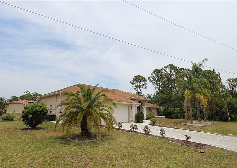 Pool home on corner lot of a third of an acre has plenty of room for family and friends with over 3000 square feet of living space, formal living and dining, spacious kitchen with breakfast nook, and family room. Features include public water and sewer, irrigation and security systems, 2 zoned AC systems, and dedicated laundry room with washer, dryer and utility tub. Impressive architectural features including soaring vaulted and volume ceilings, arched doorways, plant shelves, color accent walls, recessed lighting, and skylights and transom windows throughout home providing lots of natural light to flood home for bright and airy atmosphere. Kitchen boasts granite counters, built in desk, pantry, breakfast bar, built in oven and cooktop stove, and opens to the spacious family room that has built in entertainment center, skylight, and triple sliders to the lanai. All rooms are spacious and all bedrooms have walk in closets. Master suite has tray ceiling, 2 walk in closets and private bath with garden tub, custom Roman shower, and 2 sinks with make up vanity. Enjoy your pool from the extended 19 by 13 lanai. Lanai has pool bath and storage closet. Nice curb appeal with landscape curbing, mature palms, and screened and tiled entry. Easy access to public parks with bike and walking trails and picnic areas, and boat ramps providing access to many waterways, beautiful Charlotte Harbor, and the Gulf of Mexico. Great home in a great neighborhood. Don't miss this one!