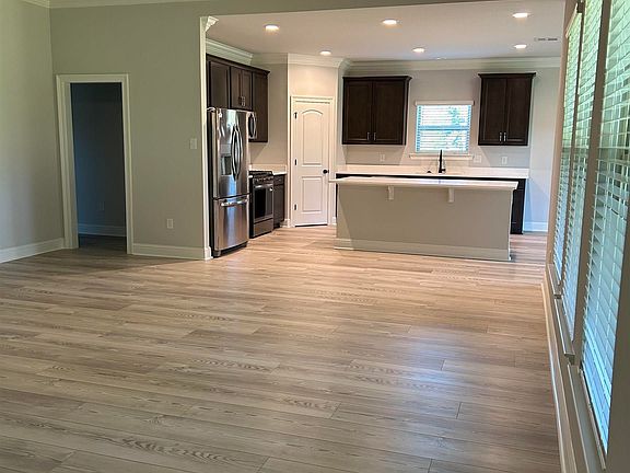 Spacious 4-bedroom, 2-bath rental home offering 2,171 sq ft of open-concept living, featuring a modern kitchen with a center island, walk-in pantry, recessed lighting, and granite countertops in both the kitchen and bathrooms. Stylish gray/brown laminate wood flooring flows throughout, and the private primary suite includes a walk-in closet, double vanity, garden soaking tub, and separate shower. Additional highlights include a 2-car garage, covered patio, and the convenience of a refrigerator, washer, and dryer included. Ideally located just minutes from I-12 and Juban Crossing, this move-in-ready home has everything you need schedule your showing today!