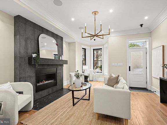 Completely renovated with thoughtful, high-end design, this brick-front townhome offers an exceptional blend of comfort and luxury. The main level features new hardwood floors, a gracious entry, and a light-filled living area with bay windows and a gas fireplace, flowing into the dining space and open kitchen with a gas range and pot filler, built-in water dispenser, microwave drawer, wine refrigerator, and French doors to a fenced, grassed backyard. The home includes three bedrooms and three-and-a-half baths with oversized windows, generous closets, and LED mirrors throughout. The primary suite is a true retreat with a gas fireplace, wet bar, custom walk-in closet with window, and French doors to a private balcony. Smart dimmers and integrated surround sound enhance comfort and ambiance. Two additional en-suite bedrooms and a concealed washer/dryer complete the upper level. A detached garage with a studio above offers flexible space for guests or a home office, with a kitchenette, beverage refrigerator, and half bath. Located in Capitol Hill near Eastern Market, dining, shopping, commuter routes, and Reagan National Airport, this home combines neighborhood charm with city convenience.