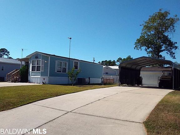 If you've ever longed for a laid-back Mayberry RFD lifestyle, Spanish Cove is the place to be! This unique subdivision is located on the shores of Perdido Bay, and withing 20 minutes to beautiful gulf beaches, Pensacola or Foley. Your cozy home boasts two lots to ensure plenty of space for your cars, RV, golf cart and/or boat. Enter your main house on the new entry porch into a fully furnished screened porch where you can also watch the outdoor TV. Or enter the home that's extra cozy due to a brand new HVAC unit. The property is being sold fully furnished, so come take a tour of your future home, whether as your primary or as a "snowbird" getaway. Your living room has a new oversized big-and-tall Lazy Boy recliner and a new sofa with a queen-size pull-out bed. The mounted RCA TV along with auto antenna also convey. The bedroom has a big-and-tall queen bed, mounted TV and direct access to the full bath that is also accessed from the hall. The kitchen features one-year-old range/oven and refrigerator, a large microwave, and an extra countertop toaster oven. The kitchen, dining room, hall and bedroom boast abundant built-in storage. All beachy wall decor, curtains, porch furniture, and so much more will remain ready for you. The yard is partially fenced perfect for small dogs or young children to safely play. The other building offers additional heated and cooled living space that includes a full bathroom, mini fridge, microwave, NuWave stove top, full-size stackable washer/dryer, and mounted TV. The double carport can also be used as outdoor entertaining space and/or have the roof raised to house an RV. Spanish Cove amenities include a variety of opportunities to enjoy activities with your neighbors year round: two clubhouses, a dual indoor/outdoor swimming pool, playground equipment, tennis courts, fishing pier, walking trails, exercise equipment! (A public boat launch is two miles away.) Just bring your clothes and your all set to enjoy your new home.