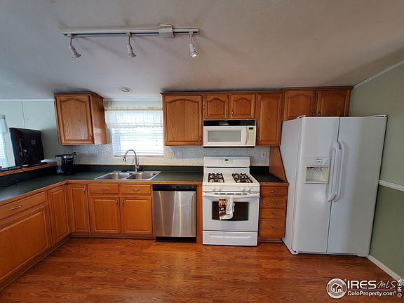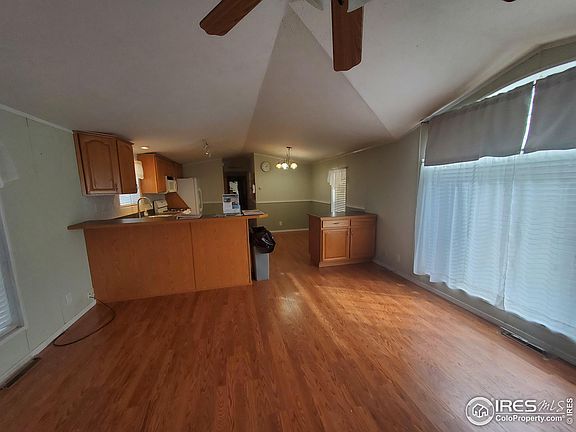 Beautiful 3 bedroom 2 bath home in Pinewood Mobile Home Park with lot rent ONLY $530.00 Per Month! Unheard of!!. A very nice family park (sorry-no dogs). Great location in Berthoud. This is a very well maintained home with double pane windows, New water heater, new smoke/carbon monoxide detectors. Ceiling fans & evaporative cooler to keep you cool in summer. Microwave, Gas stove/oven, Dishwasher, Refrigerator, Washer & dryer all stay! Great open floor plan. 2 car off-street parking with 1 car carport & great deep shed with workbench for all your tools & gadgets. Kitchen has wonderful work space & tons of cabinets. Primary bedroom has private bathroom with double sinks, walk-in shower & extra closet for more storage. This home is lovely - you don't want to miss it! Berthoud is a quaint town only minutes from Loveland. Great access to I25 as well. Need financing - It's available!