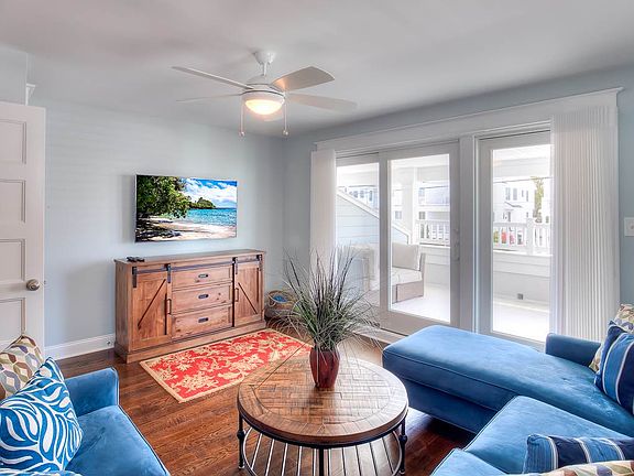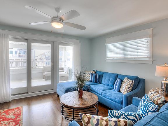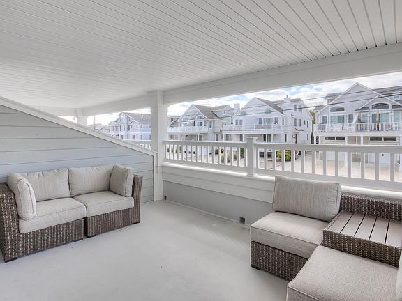 This immaculate 3-story Avalon town home is perfectly situated on 34th Street, with bay views and only a short walk to Avalon's famous beaches. The architecturally pleasing grand facade is complex with white vinyl accents, brick clad masonry, and a great balance of modern Victorian charm and bold double pitched roof lines. You will immediately notice the raised first floor elevation and two large fiberglass decks that are perfect for entertaining guests while utilizing the grand public spaces. Immaculate and thoroughly kept, this 5 Bedroom three and a half bath home is an excellent opportunity to own a large luxury vacation property that is unmatched by anything else on the market today. On the elevation level you can enter the meticulous garage that is attached to a beautifully appointed rear bonus room. This ground level is perfectly designed to integrate the beautifully landscaped pool area and the pool room that is designed for a nice cool shaded area to serve cocktails or watch TV by the pool side, with a bar window facing the Pool. On the second level you enter the open public spaces beyond the kitchen, with beautiful white cabinetry and upgraded granite countertops that perfectly contrast the dark walnut hard-wood floors throughout. A convenient center island, upgraded large dishwasher and high-end appliances make this kitchen a perfect place to entertain your family and friends. Beyond the open kitchen moving through the dining area the spaces open up to a grand living space with tall ceilings a beautiful white natural gas fireplace covered in craftsman wood and tile. The bright southern light peers through tall windows and a wide slider door that brings you to the large open fiberglass deck. Perched above the center of 34th street you get nice bay views to the West. On the 4th level you will enjoy the privacy of your own master suite plus an additional bedroom and full bath. This property affords all of the amenities you will need for a perfect Avalon Beach getaway. With beach access down the block on the 34th street ramp, Bay Views, private expansive decks and a luxurious outside shower, this home is an excellent combination of luxury and modern shore living.