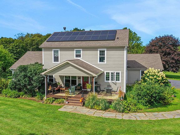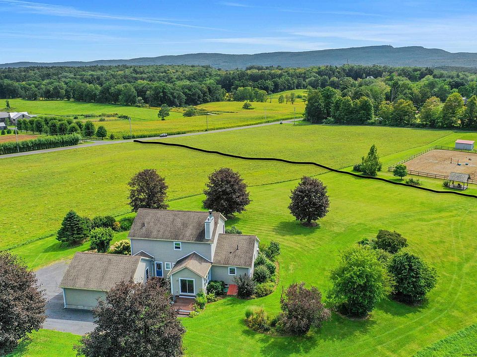 Looking for a special Hudson Valley property with views to die for, serenity and tranquility – 235 Airport Rd delivers. 235 Airport Rd. boasts acres of lush greenery and stunning views of the Shawangunk Mountains and Mohonk’s Skytop Tower. Picturesque fields are sprawled out so from the covered front porch you can watch the sunrise, the ponies frolicking in the field, and the butterflies & bobolinks fluttering about in the wildflowers. Any garden enthusiast will be impressed with the gardens surrounding the house. From the most spectacular Hydrangea tree I’ve ever seen, to the flowers, wisteria, red maples, weeping cherry and much, much more – these gardens provide the house with privacy and an amazing backdrop whether you’re entertaining or enjoying a quiet evening at home. If eating what you grow is your jam, a perennial garden full of raspberries, strawberries, blueberries, tomatoes, peppers, basil, apple & peach trees and much more are waiting for you. The house has a classic farmhouse feel with its glistening hardwood floors, quartz/Silestone countertops and large windows that invite the stunning natural surrounding indoors. It’s that time of the year when we look forward to cozying up in the living room with a fire crackling, and the gracious dining room and kitchen with it’s large island are perfect for entertaining. The 1st floor primary bedroom is spacious, has a view of Skytop, a walk-in closet and ensuite bathroom, with a soaking tub and separate stall shower. The other 2 bedrooms upstairs offer an ideal sanctuary after a day spent on outdoor adventures exploring your property. Located in Accord, NY, 235 Airport Rd is a short drive to Arrowwood Brewery, Westwind Orchards, Inness Restaurant and Hotel, and so much more! This is more than a property, it’s a chance to create your own slice of heaven in the Hudson Valley. Reach out today to schedule your private tour and discover the endless possibilities that await you!