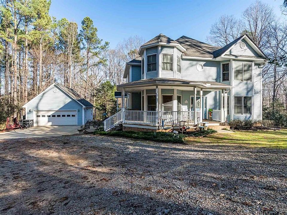 Welcome to your NextHome and Oasis! With nearly two acres, this beautiful property boasts with privacy and nature, while also providing the perfect entertainment opportunities. A large, heated, detached garage, that is currently home to a workout area and home bar with running water, is the perfect way to enjoy time with those closest to you. The home, itself, offers a beautiful wrap around front porch, spacious living areas, ample storage, hardwood floors and some updates to include: New LVP flooring throughout the upstairs, updated bathrooms and HVAC replaced in 2016. The Stunning owners suite provides ample space, a soaking tub and stand alone shower. Did I mention it has a laundry chute?! Don't miss out on this amazing opportunity to call this dream, yours! Schedule a private showing today!