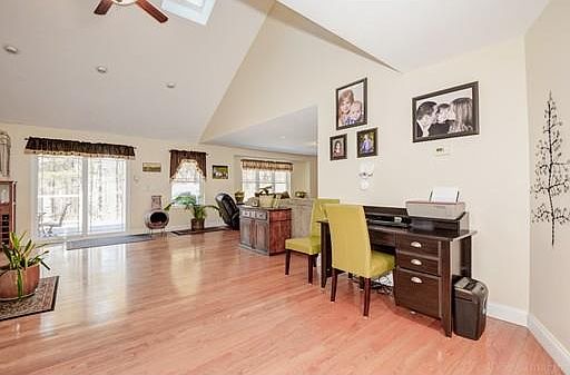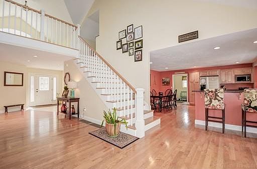 Not a Colonial! This house is something to get excited about...it's the OPEN CONCEPT that you've been looking for! This 9 y/o contemporary Cape is bright, open, and airy throughout. The large family room that flows into the flexible foyer area (plenty of space for a dining area or office) and then into the eat-in kitchen that comfortably seats 10! Granite counters, SS Jenn-Air appliances, and plenty of storage! Hardwood floors throughout first floor! Mudroom / laundry + half bath off the kitchen (all the things you want in a house). This home also features a spacious first floor master suite w/ walk-in closet. The second level offers two large bedrooms, a full bath, and a huge open loft (family room/play room/ workout room/office). Large composite deck leads to a private 1 acre FLAT backyard. Top-of-the-line Buderus heating & hot water, central AC, water filtration & softener system. Ready-to-finish LL. This house has been impeccably maintained and is truly turn-key.