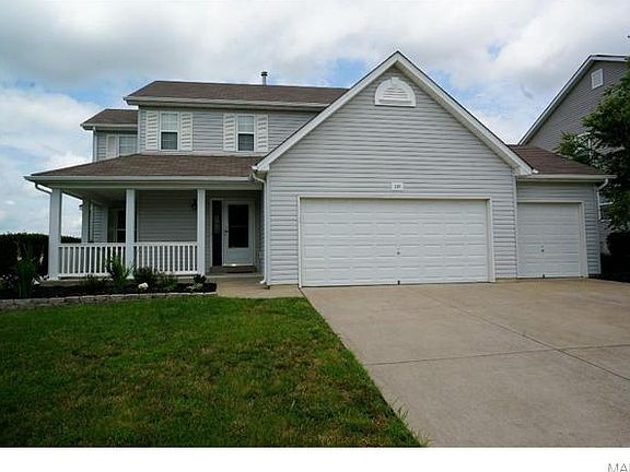 You'll fall in love with this awesome 3 bdrm, 2.5 bth home with 3 car garage, walk out basement, located in the heart of Wentzville. This home has lots of curb appeal with the wrap around covered front porch and prof landscaping. It's virtually maintenance free w/ vinyl siding and enclosed soffits and fascia. Enter this home and find a beautiful foyer that flows into a huge great room with ceiling fan and three large windows overlooking your level backyard. The large kitchen features custom cabinets, island bar, built in microwave and pantry. Attached brkfst rm has a sliding glass door that exits out onto a huge deck or exit to your three car garage through the main floor laundry/mud rm. Travel upstairs to a large loft area that can be used as an office or sitting area. The huge mstr bdrm features a walk in closet and an additional smaller closet for extra linens and towels. Mstr bth features double sinks and sep tub and shower. Get all this is an award winning school district.