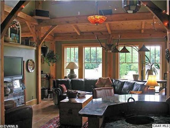 HISTORIC "TANGLEWOOD" is an architectural gem majestically sited on a tree-lined drive, only 30 min. to Short Pump/5 min to Lake Anna on the Louisa/Hanover line. This is the QUINTESSENTIAL gentleman's farm w/craftsman style home. Lovingly renovated & in MOVE-IN-CONDITION. Open floorplan/interior filled w/charm & character! 2-story timber-frame addition (2007) w/heated Italian tile flr, granite wetbar, internal balcony & windows galore! Granite country kitchen w/stone FP opens to DR...