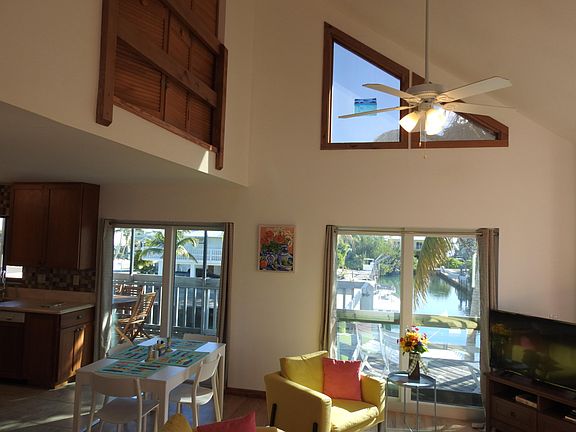 Enjoy quick, deep-water boating access to reef & back country from your new home in Jolly Rogers Estates. This well-maintained, multi-level, stilt home has a 60 foot concrete seawall, & no bridges to open water. Upper-level, Master Bedroom Suite features bath w/ tub and stall shower, walk-in closet & private deck, plus views of flow-thru canal & Newfound Harbour. Cathedral -ceiling great room also overlooks canal, as does kitchen, upper porch & deck. This 2 bed, 2 bath residence contains 1,262 SF under air & includes: separate laundry room, downstairs enclosure, finished carport, storage shed, metal roof & hurricane shutters. Dining, live music 5 mins away; Key West / Marathon 30 mins. Property minimally damaged by Irma. Owner has obtained quote to replace back railings. Priced to Sell.