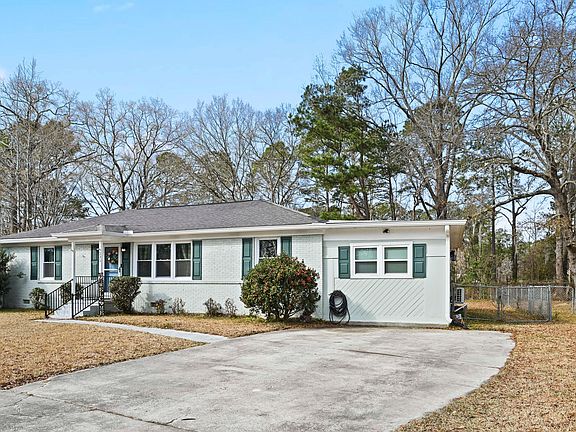 Welcome to your beautiful brick ranch home! This home is located in the established Beverly Hills neighborhood of Goose Creek on a quiet road. When you enter you'll discover nice hardwood floors, fresh paint throughout with a bright and open living area designed for modern living. The beautifully updated kitchen is truly a showstopper with stainless steel appliances, gorgeous quartz countertops, single basin sink, beautiful backsplash, nice island with waterfall edges and tons of cabinet space. The primary suite is beautiful with an en-suite bathroom complete with a large dual sink vanity, and beautiful tiled backsplash with a walk in shower.On the opposite side of the home, you'll find three additional spacious bedrooms and a fully guest bathroom that features a vanity with tile backsplash, tub/shower combo with tile surrounding, and built-in shelves with a nice sliding glass door. The home also includes a convenient laundry area with a newer washer & dryer that is conveying. Two year young HVAC with all new ductwork! New spray foam insulation for energy efficiency installed in 2022.Outside, enjoy a large fenced-in backyard ideal for entertaining! Relax on the back deck, or gather around the brick firepit area. You are just minutes from shopping, dining, the Naval Weapons Station, this home offers both convenience and comfort. This home is being sold as-is. Don't miss out schedule your showing today!