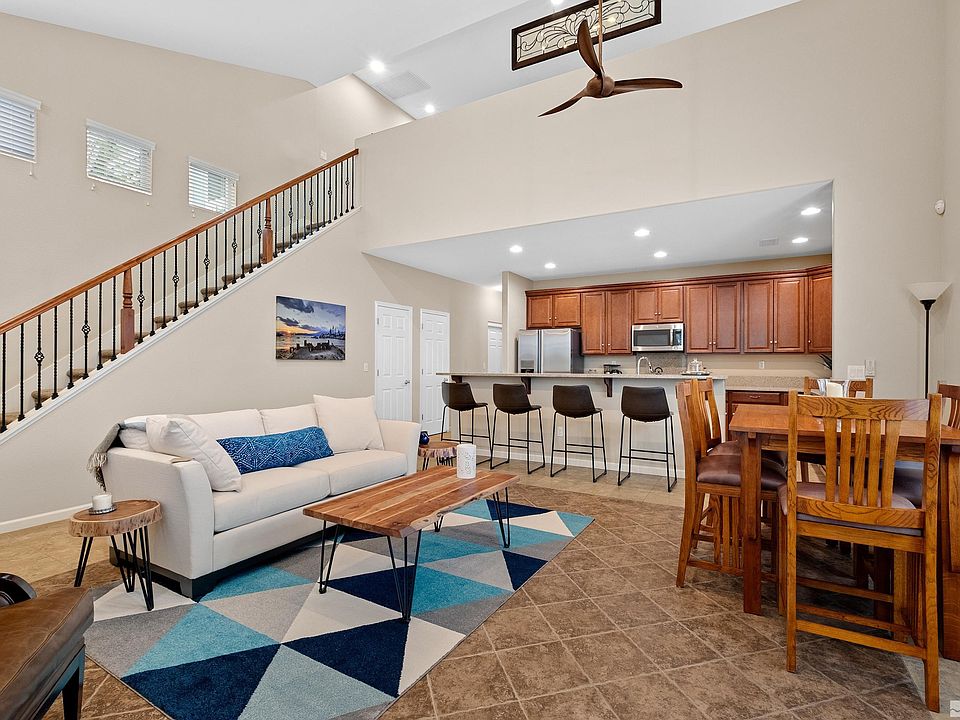 An immaculately kept home in one of the most walkable areas of South Reno, steps away from Virginia Lake and 5 minutes from MidTown! A marvelous, custom-tiled Great Room joins the Living and Kitchen areas, with an additional, substantial Family Room upstairs. All bedrooms are impressively sized, with plenty of storage and cabinets space in closets and bathrooms, plus private yard. You'll feel as if you are touring a new model home when you see the pristine cleanliness and utmost care taken by the Owners!, NEW Carpet in bedroom. NEW Patio in yard. EPOXIED GARAGE. Repainted wherever needed, with original paint. Lots of cabinet space in kitchen, in addition to granite counters and an eat-in island. Walk-in closets, double vanities, full size washer/dryer, storage closets, and high ceilings! This is the only model in the development that features a downstairs Primary Bedroom. Includes 2 living room consoles, a TV set (Including sound bar and speaker), and second floor hanging art piece.