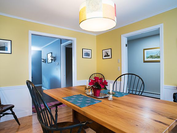 Enjoy the convenience of living close to downtown Damariscotta in this comfortable three bedroom ranch offering one floor living and features a recently remodeled kitchen with top of the line Bosch appliances and custom granite countertops. Cozy up in the living room to embrace the warmth of the wood stove or capture the fabulous sunset views of the Damariscotta River Valley from the large windows. Other amenities include an airy heated four season sun porch and an insulated two car garage with easy access to the living space. The partially finished walk-out basement boasts a newly installed pellet stove which provides exceptional heat and comfort during cooler months and this finished multi-purpose room includes a half bath, ideal for a home office, fourth bedroom, family room or in-home gym.
