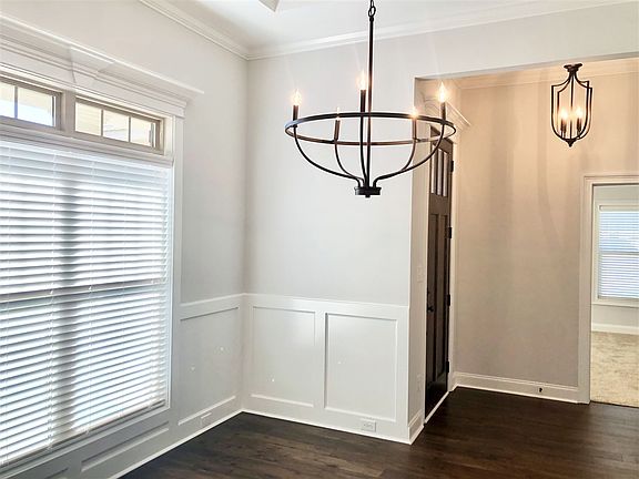 The lovely Fairburn plan by Trinity Built Homes features a split bedroom plan, eat-in kitchen area, island, stainless steel appliances, natural stone countertops, pantry, and separate dining room. The owner's suite is complete with a reading nook, 2 closets, double vanity, separate tub, & tiled shower.