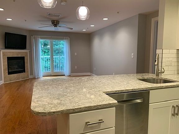 Rare opportunity to live in this beautiful condominium in the Heart of Burlington. This 2 bedroom ~ 2 full bath condo features hardwood floors thru out, open concept living - dining - kitchen area with breakfast bar, gas fireplace and sliders out to a balcony. Kitchen is fully equipped with stainless steel appliances, granite counter tops and upgraded cabinets, central air and ceiling fans in every room, main bedroom has full bath and walk in closets, another full bath and generous size bedroom, washer and dryer in unit. 2 car parking - 1 in the garage and one in the lot, elevator from garage or lobby level, professionally managed property No pets or smoking allowed $3100 1 year lease first month 1 month security deposit 1/2 month realtor fee $20 application fee Tenant pays for gas and electric