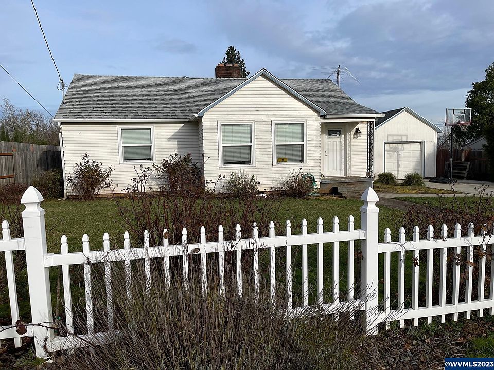 Charming Candalaria cottage built in 1948 with lots of upgrades. Hardwood floors, wood fireplace, formal living/ dining room, totally updated kitchen includes range and refrigerator. Inside utility Room; 3 bdrms, 2 full baths. Fully enclosed sunroom not included in SF. FA Gas and Central AC. Detached garage with storage area. On .20 acre lot fully fenced with auto sprinklers. Enjoy a variety of fresh grapes, raspberries and blueberries.